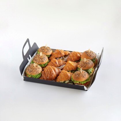 Предзаказ. Блины "мясная начинка", Мини круассан с говядиной, Тарталетка с риетом из сёмги и икрой, Мини киш с сёмгой и брокколи.