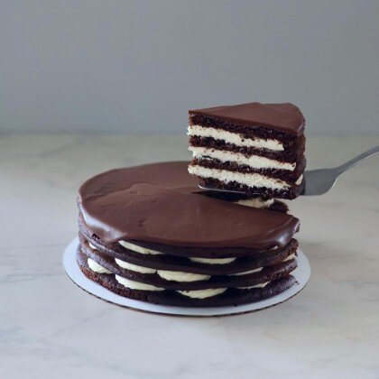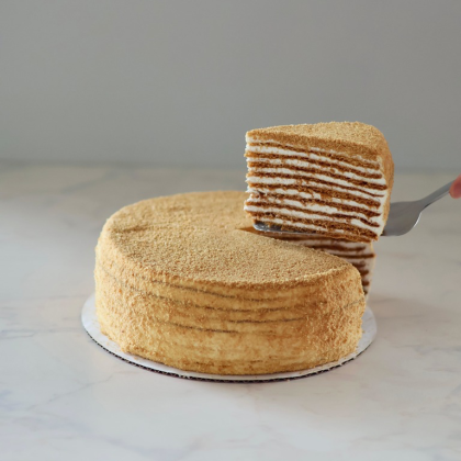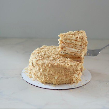 Нежные, тонкие коржи на сгущенном молоке в сочетании со сливочным, воздушным кремом, напоминающим мороженое. Перед этим тортом невозможно устоять. Срок годности до 3-х дней со дня производства. Вес кондитерского изделия может отличаться на +\- 50 гр