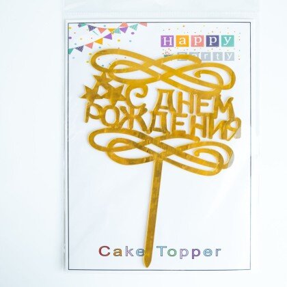 Топпер золото "С днем рождения! Туған күніңмен!"