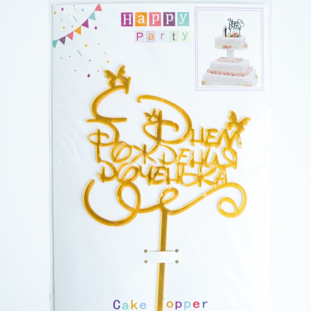 Топпер золото "С днем рождения! Туған күніңмен!"