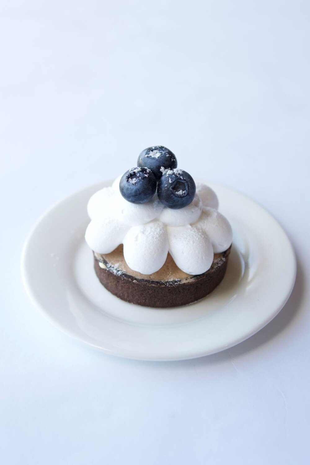 Шоколадное песочное тесто, шоколадный чизкейк, шоколадный крем и голубика