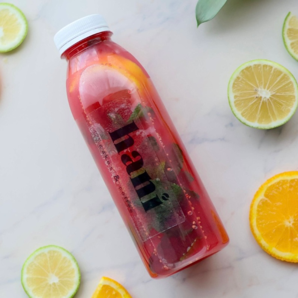 Освежающий лимонад малина собственного приготовления - пюре малина, лимон , мята