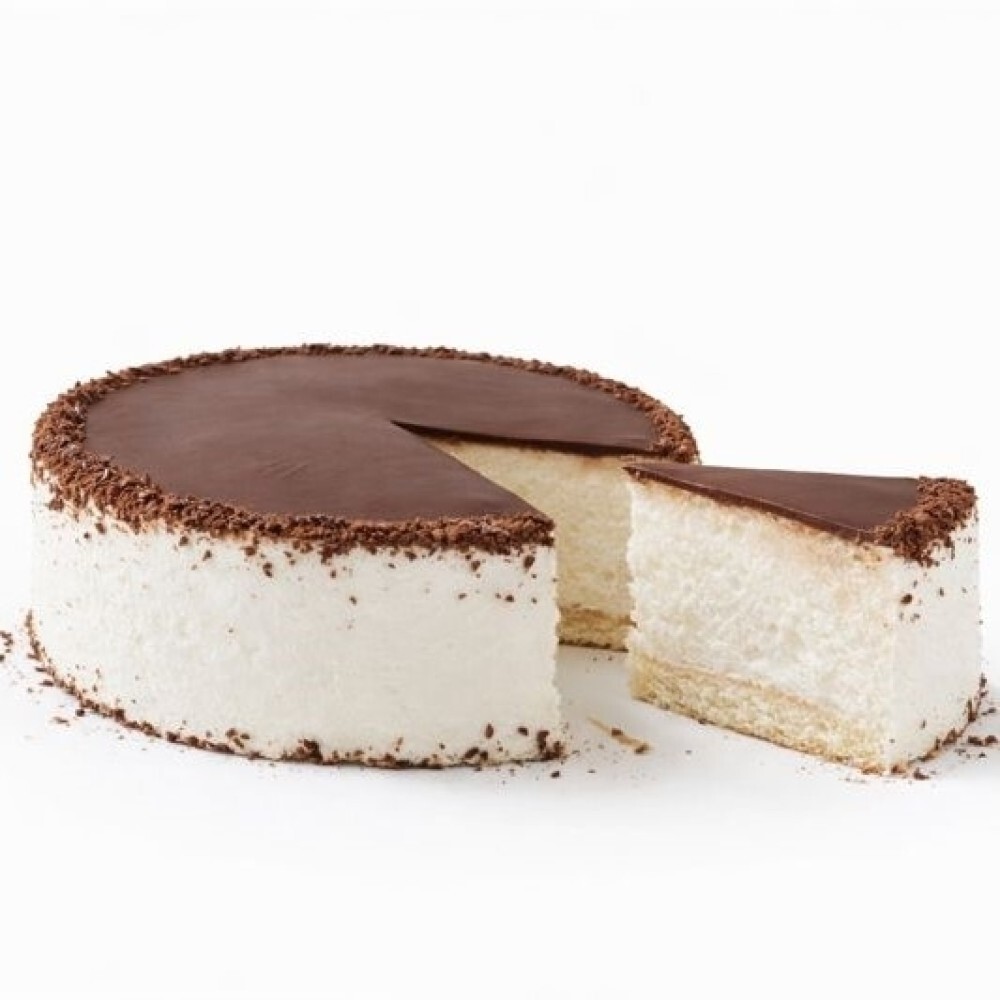 Нежное, сливочное суфле, сверху политое шоколадом и воздушный бисквит на миндальной муке. Срок годности до 3-х дней со дня производства. Вес кондитерского изделия может отличаться на +\- 50 гр