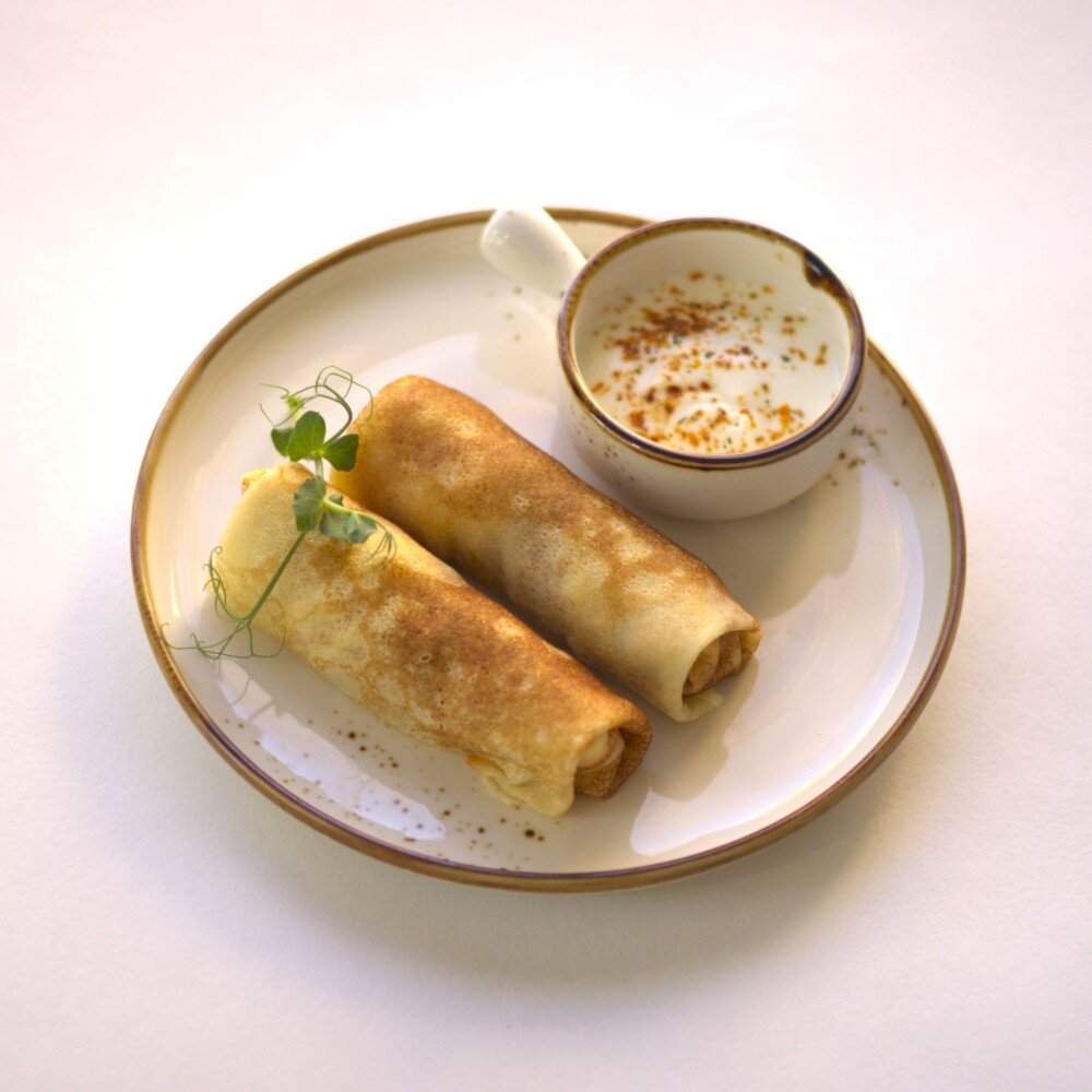 Блинчики цельнозерновые с семгой и красной икрой