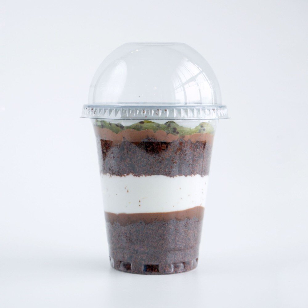 Воздушный шоколадный бисквит, политый шоколадным ганашем, легкий сливочный крем и кусочки спелого киви