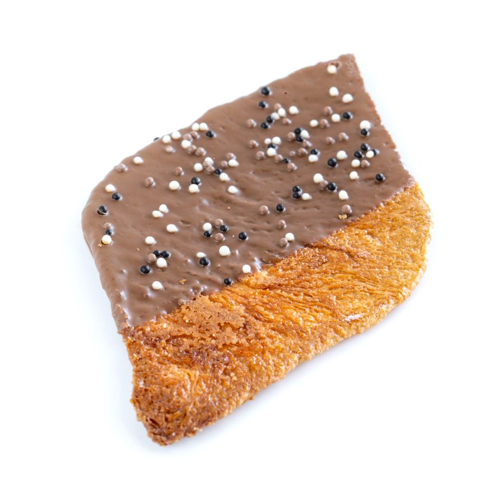 Тесто на основе натурального, сливочного масла, сделанное по французской технологии, украшен Бельгийским шоколадом Callebaut и рисовыми шариками