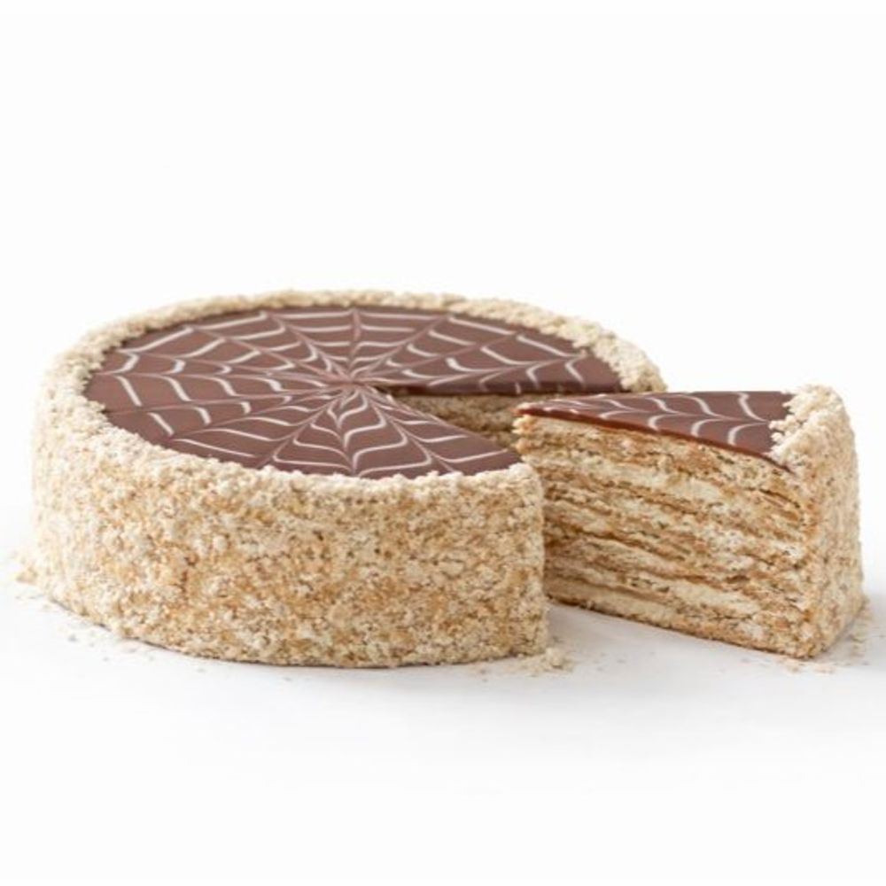 Хрустящие ореховые коржи из меренги, пропитанные сливочным кремом на основе вареной сгущенки. Срок годности - до 3-х дней со дня производства. Вес кондитерского изделия может отличаться на +\- 50 гр