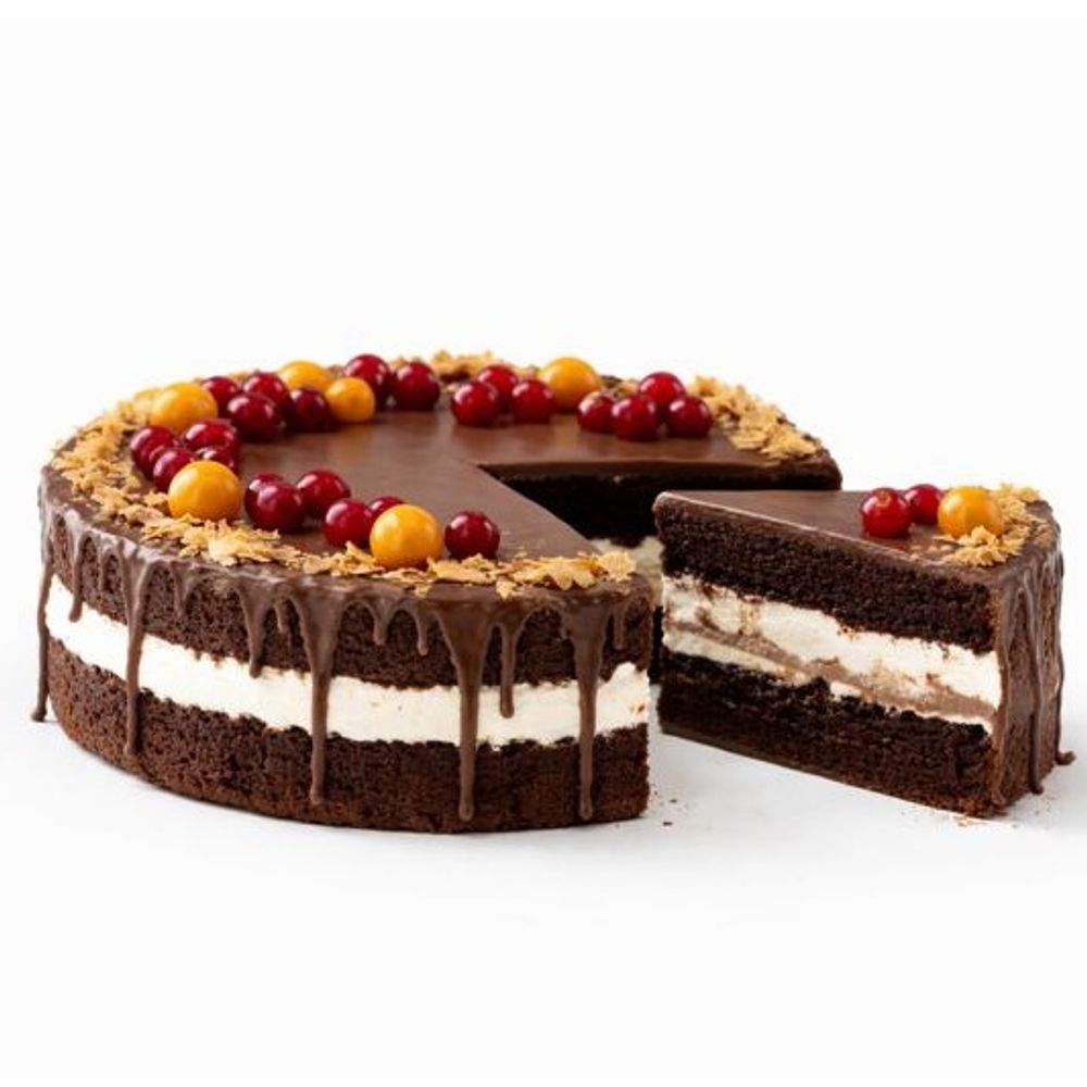 Три слоя шоколадного бисквита, с прослойкой из сливочного крема и шоколадного ганаша. Срок годности - до 3-х дней со дня производства. Вес кондитерского изделия может отличаться на +\- 50 гр